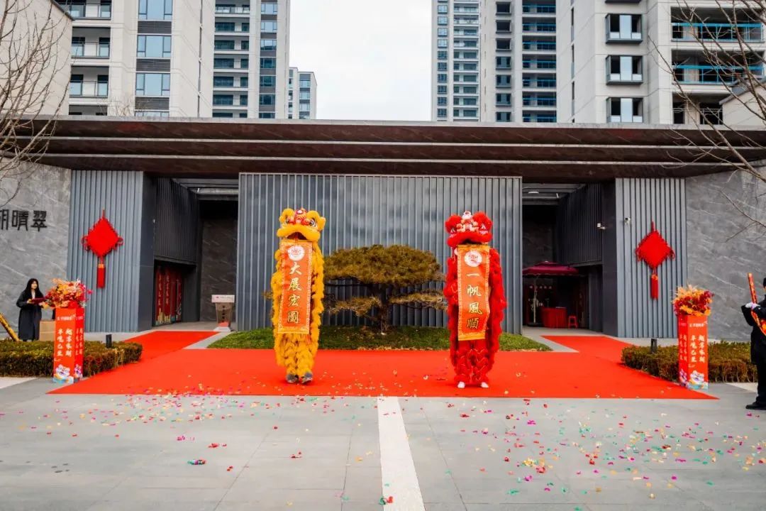 灯笼、福字、中国结、茶歇,载着满满当当的欢迎与祝福;一个小摆件就是一则动人的童话;舞狮表演、砸金蛋活动将现场气氛推至高潮……