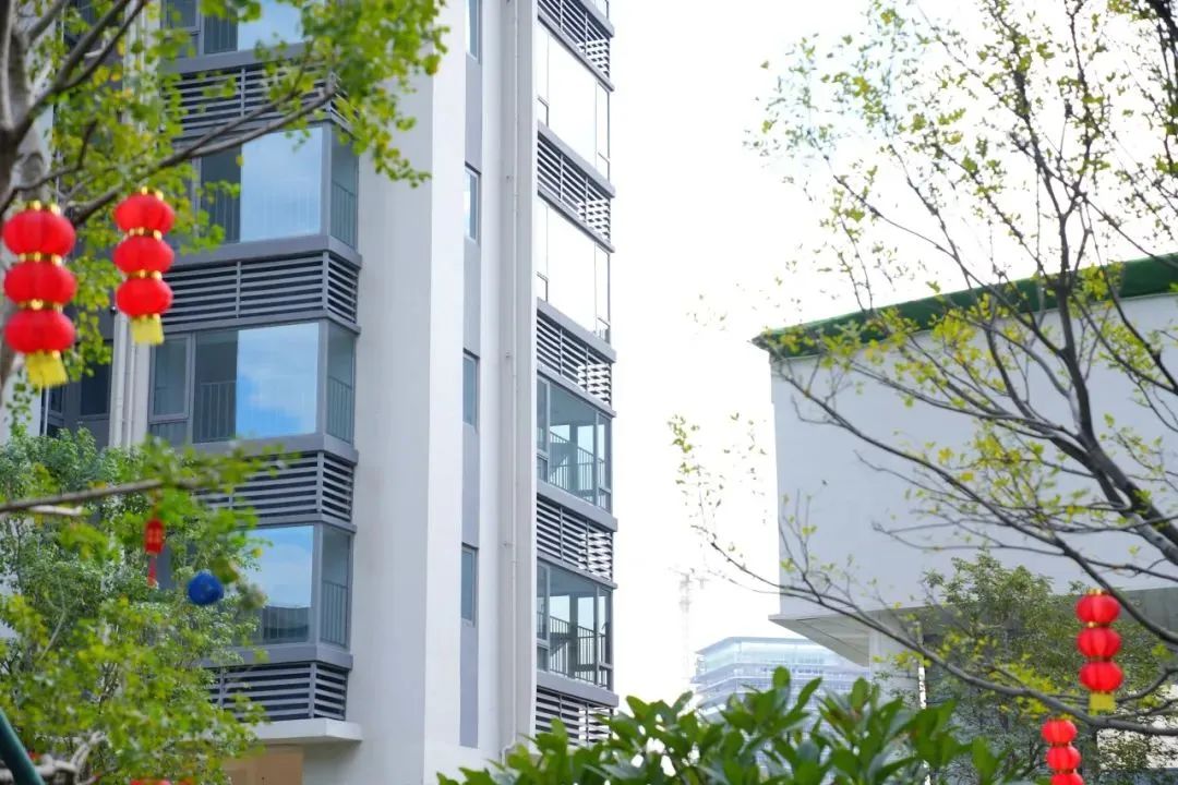 在外立面呈现上,项目通过米白与哑灰合奏出清爽的基调,以去繁就简的线条勾勒简洁几何韵律,搭配大面积高透光玻璃,营造摩登晶幕美学。