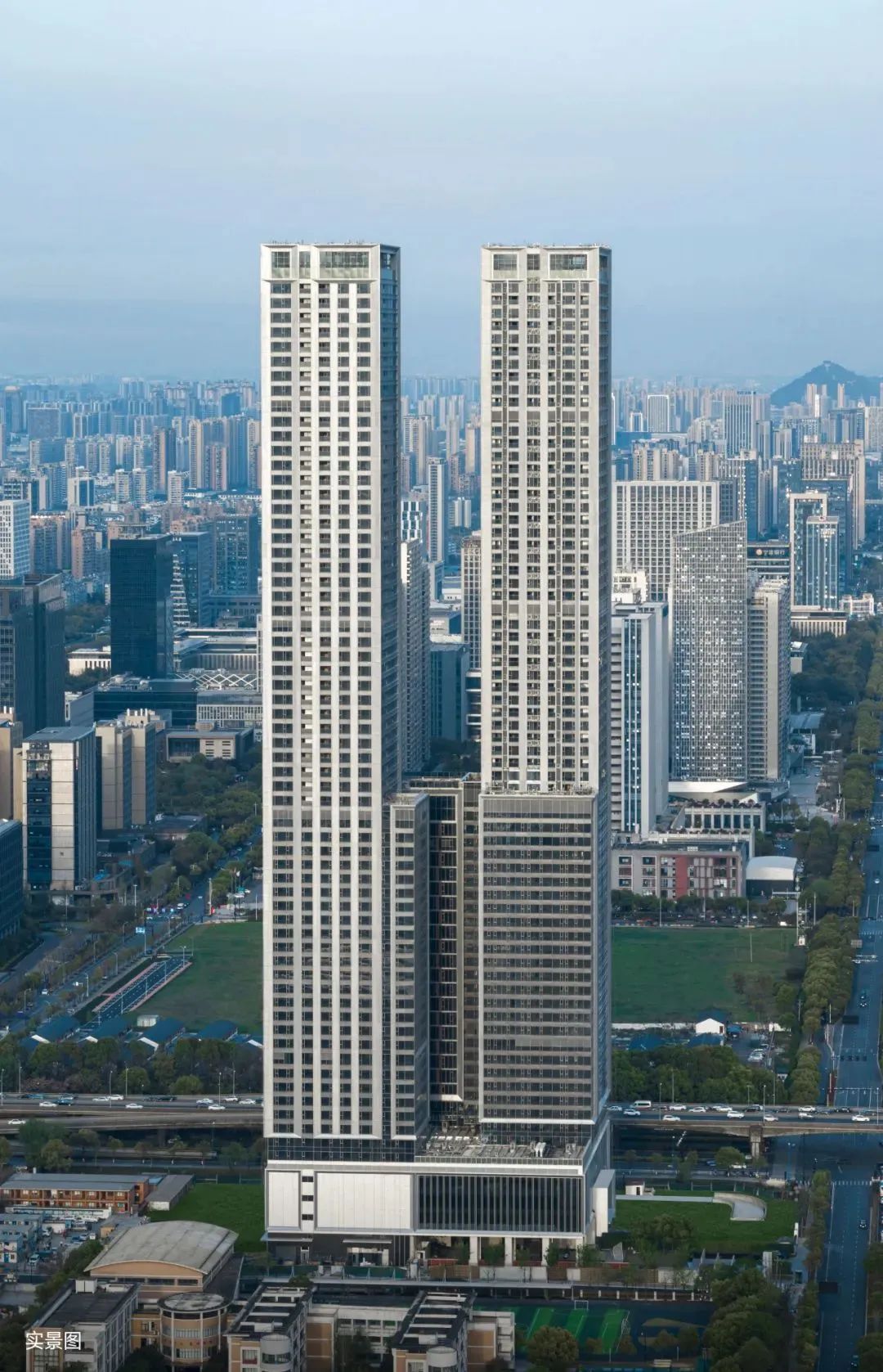 对望钱江,远眺西湖,杭州傲旋城屹立一座约240米的城市地标。项目外立面从江南折扇中汲取造型灵感,融入现代东方语汇,通过金属质感与自然质感的碰撞,诠释富有层次感的建筑符号。