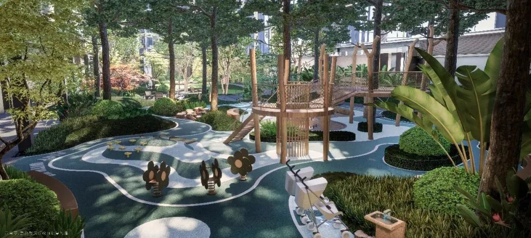 园林景观挖掘南山在地文化,依据“森谷花园”概念,营造山涧跌水、镜水花园、秘密森林、云顶氧乐园四重秘境。同时,植入治愈式屋顶花园、艺术共享会客厅、“森宝游园会”主题儿童乐园、网红骑楼商街等全龄轻奢社交空间,打造涵盖儿童活动区、邻里交流区、归家侯客区的小红书式主题架空层,落地一座趣味、愉悦、舒适的艺术社区生活秀场。